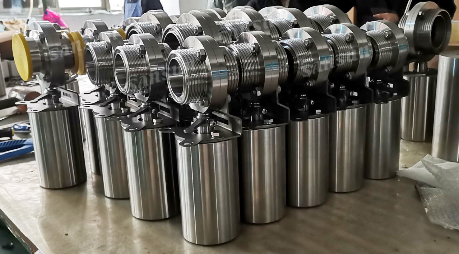 • Válvula de mariposa sanitarias.- Preferentemente utilizadas para la conducción de líquidos aunque en algunos casos una válvula de mariposa puede ser utilizada para dejar pasar una sustancia granulosa.