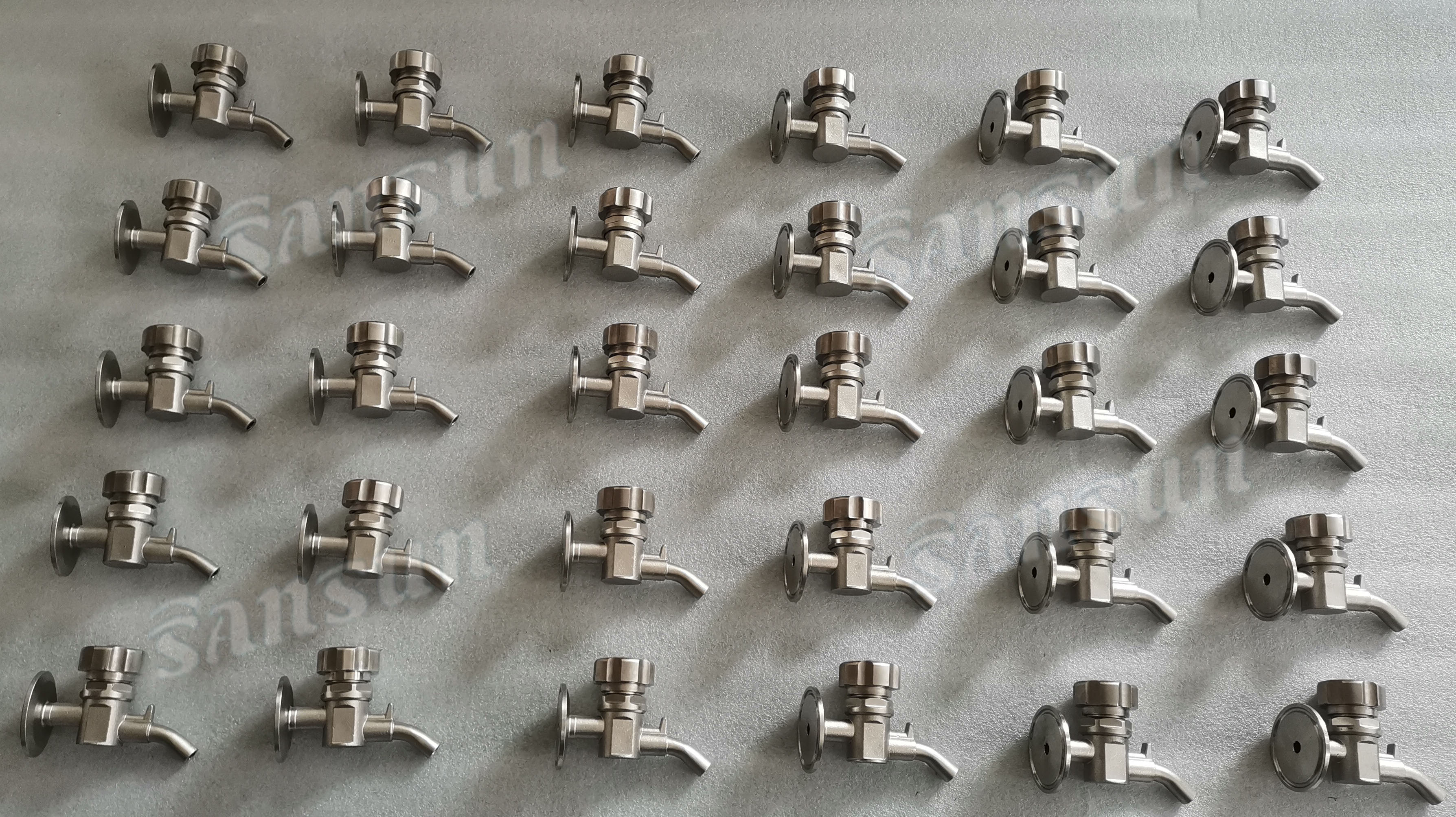 • Válvulas de muestreo o saca muestras sanitarias.- Normalmente estás válvulas son pequeñas y pueden venir con conexión clamp o con rosca NPT.Estás válvulas se utilizan cuando en un tanque o una línea se requiere sacar una muestra del producto que se está manejando.