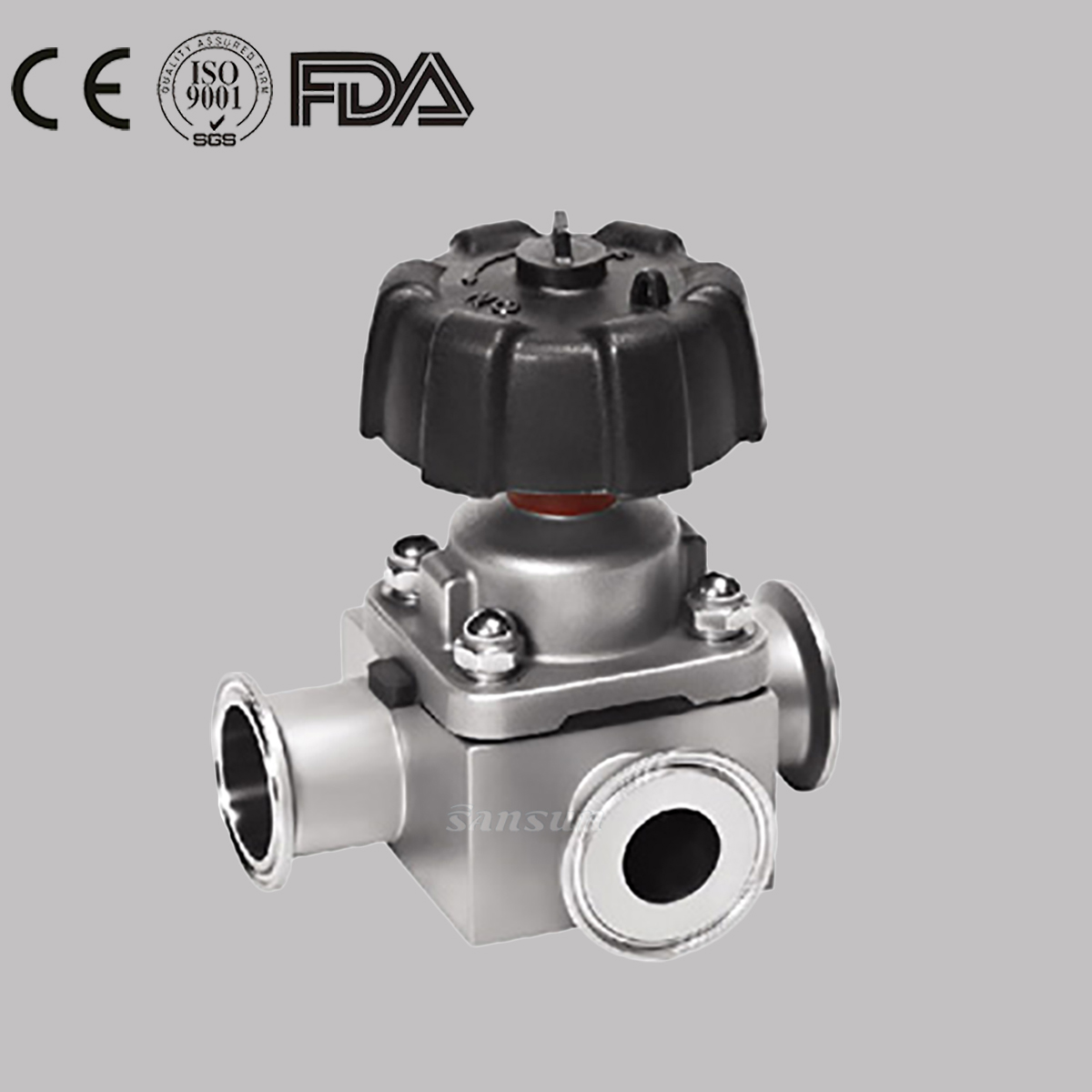 Las Valvulas Sanitarias de Tres Vias Tipo Clamp en Acero Inoxidable son válvulas grado alimenticio que permiten direccionar el flujo ya hacia la derecha o a la izquierda.