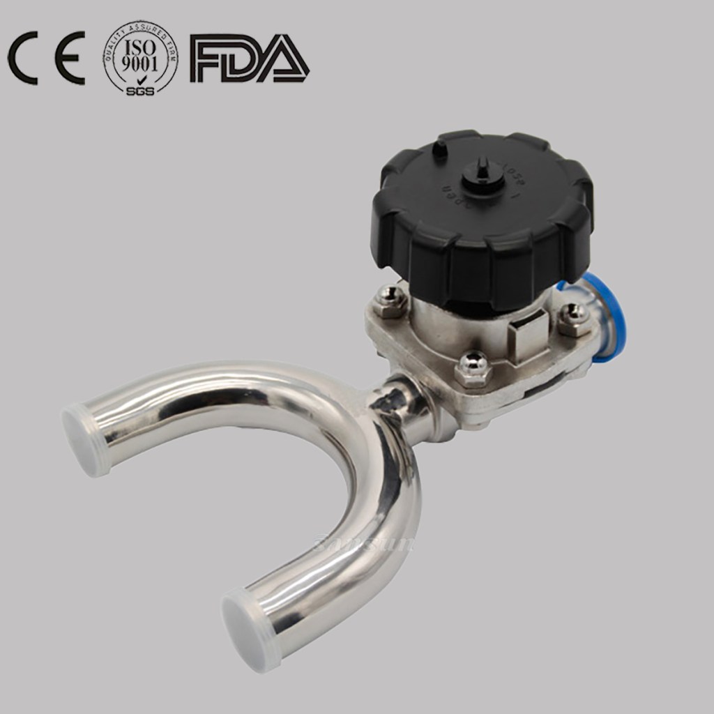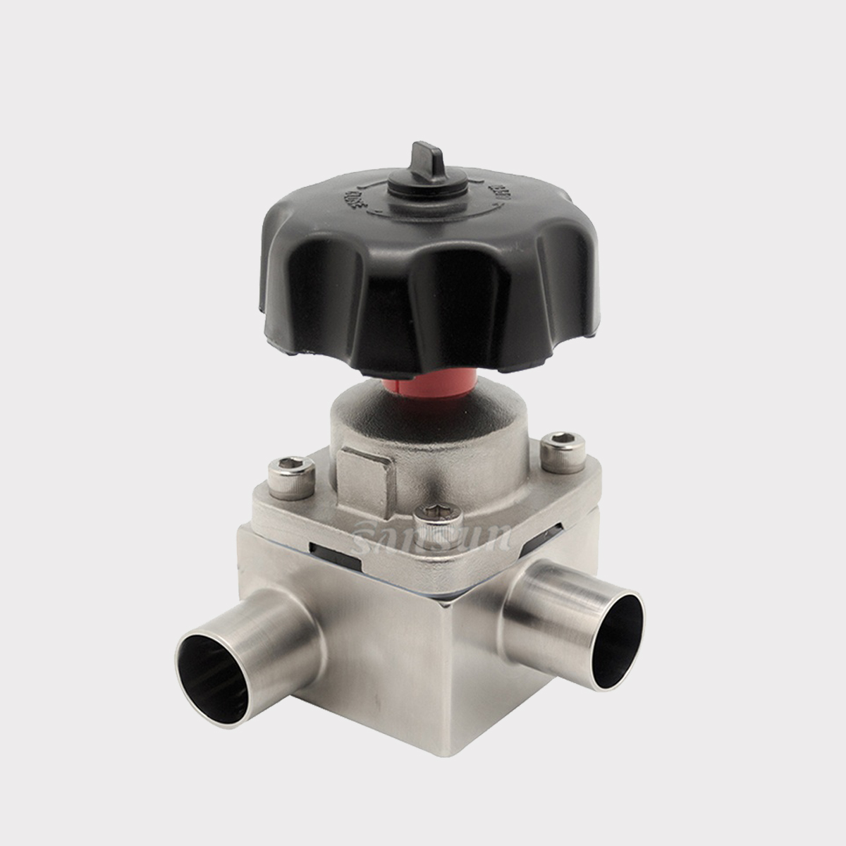 Valvula Reguladora de Flujo Diafragma Sanitaria.- Cuenta con una figura de 2 vías y su bonete le permite abrir y cerrar la válvula lentamente, lo que hace posible que el flujo sea regulado.